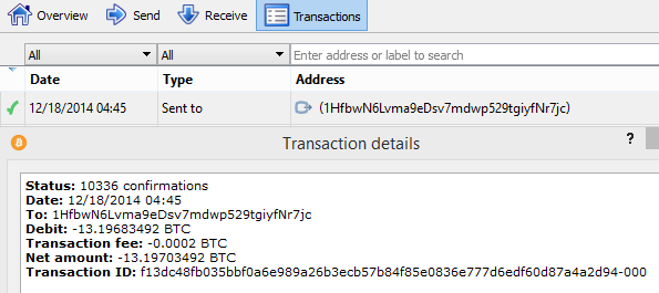 In our example, the outputs were for a total of 13.19703492 BTC.