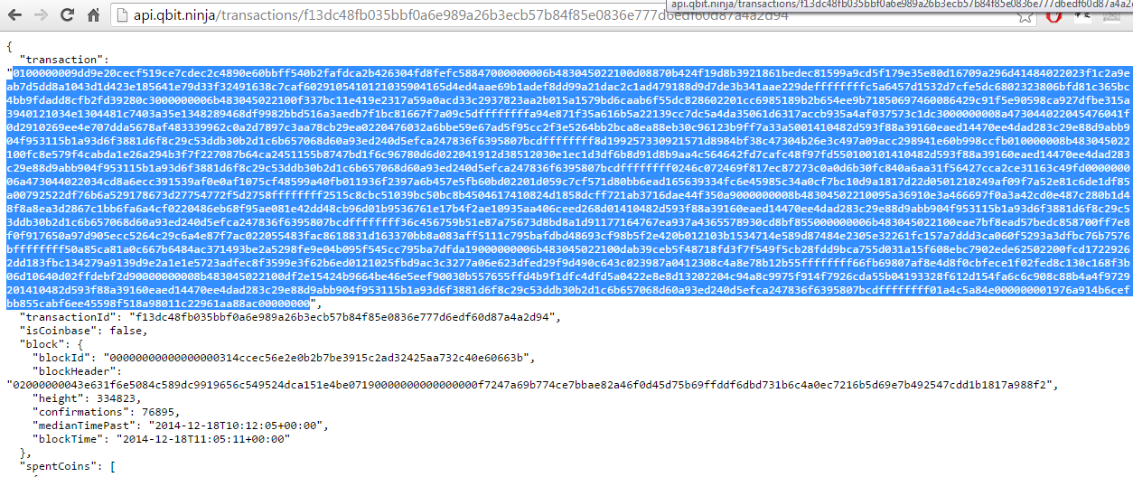 With the previous outpoint's transaction ID we can review the information associated with that transaction.